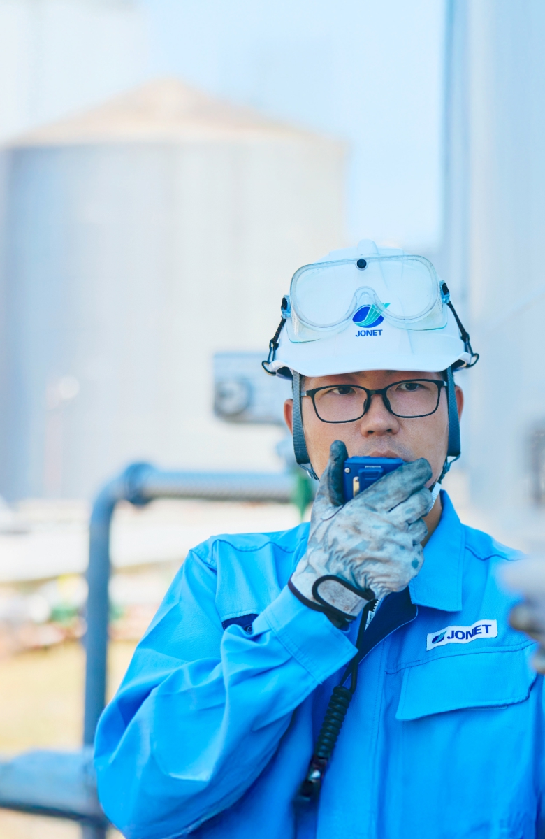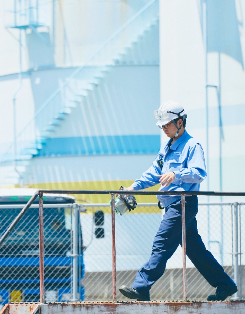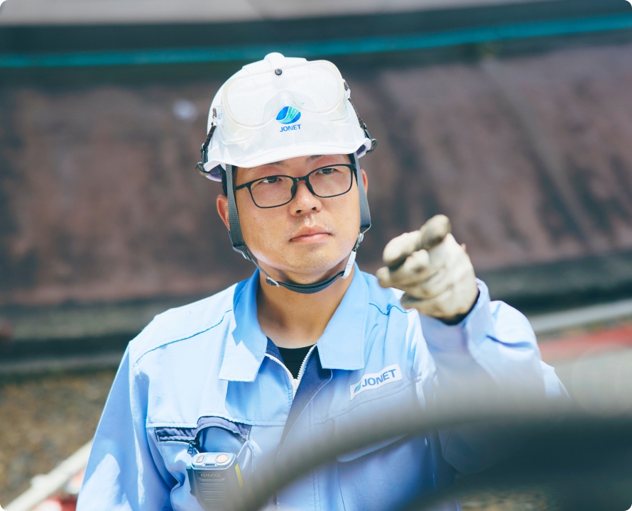 扱っているものが危険物ですし、間違いがあってはならないし、巨大な設備をメンテナンスしていかなければならないし……、初めは緊張しましたが、研修と実践を繰り返して、いまは不安なく安全に作業を進めることができています。